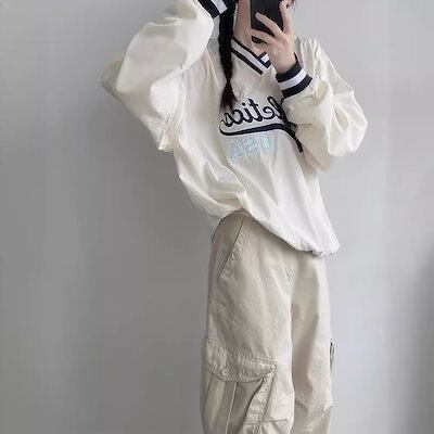 韓国ファッション レディースバーカー ゆったりカジュアルスウエット