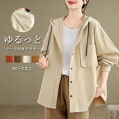 レディース フード付き 体型カバー ライトアウター 秋 レトロ 羽織 長そで ロング丈 スプリングコート シンプル 上着 コート レディース オーバーサイズ ジャケット 無地 チュニック カーディガン | gizshop