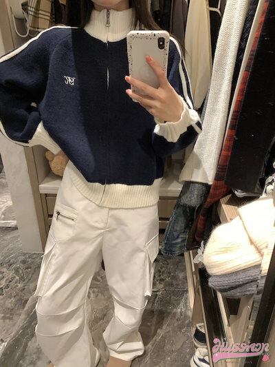アウター レディース BF風 カレッジスタイル ブルゾン 長袖 秋冬 きれいめ ニット 華奢見え 可愛い おしゃれ メンズライクトラックカジュアル 学生 シルエット サイズ スタイルアップ 春 色っぽ