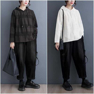 2024新作 レトロ パーカー ドッキング スウェット フード付き 大きいサイズ レディース トップス メガ割