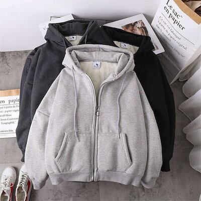裏起毛 パーカー アウター スウェット ジャケット レディース 厚手 長袖 ゆったり ジップアップ カーディガン 無地 フード付き ジップ あったか スエット 裏ボアパーカー フードパーカー ジ | gizshop