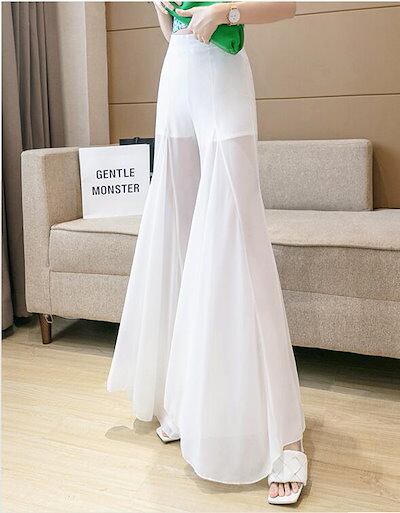 ガウチョパンツ レディース パンタロンパンツ シフォンワイドパンツレディース 2色 春夏秋パンツ ガウチョ ラッパパンツ ハイウェスト 人魚裾パンツ ブーツカット 女性 チノパンツ 通勤 OL フレア | gizshop