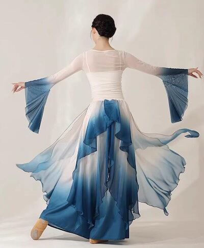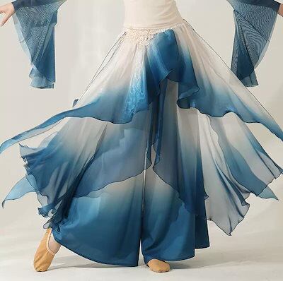 レディース古典ダンス衣装 スカート風キュロットスカート ふんわりガウチョパンツ フレア長袖tシャツ シースルー 仙女切り替え飄逸ワイドパンツ 舞台演出服 古典舞踊ダンス 社交ダンスウェア 練習着 レッ | gizshop