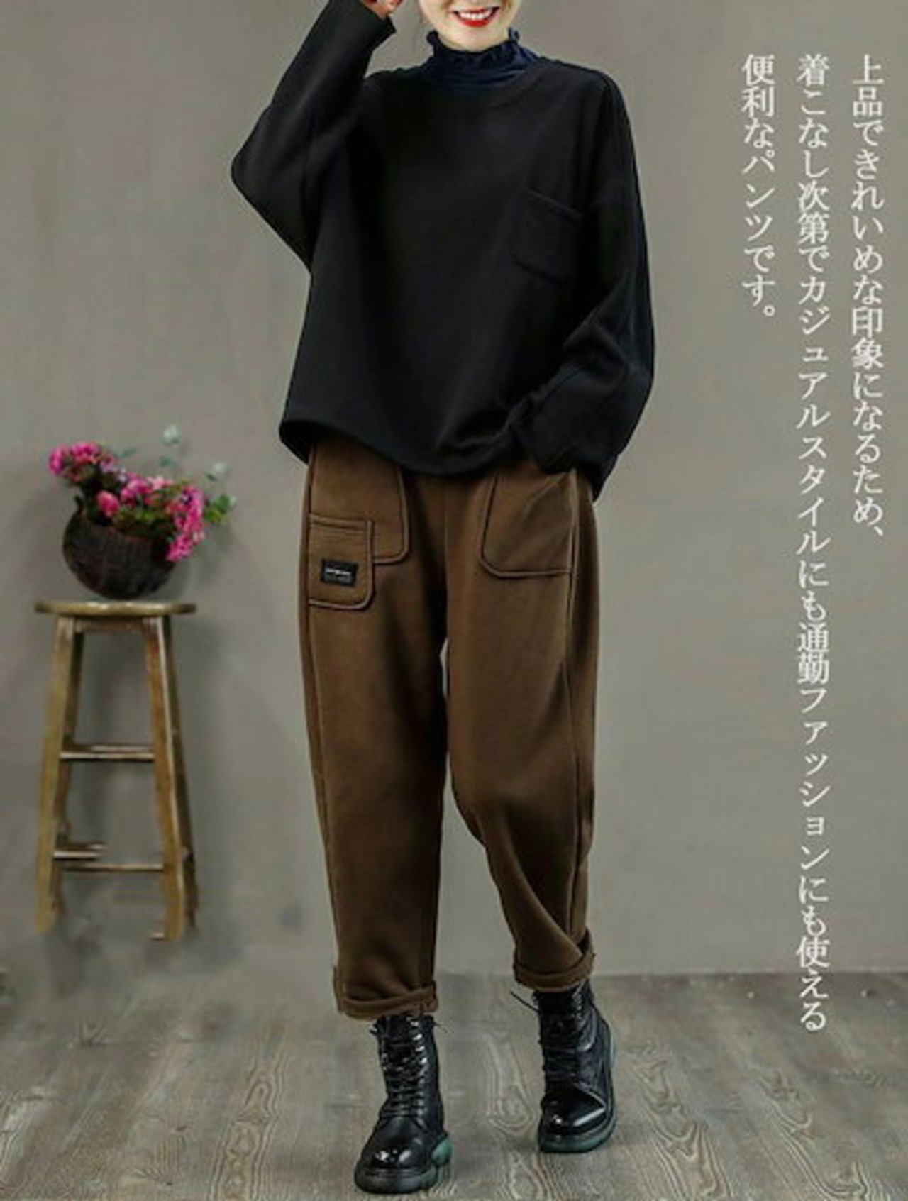 裏起毛 テーパードパンツ レディース 秋冬 ワイドパンツ パンツ ボトムス フレアパンツ ハイウエスト イージーパンツ ウェストゴム 裏起毛ワイドパンツ 無地 裏起毛テーパードパンツ ポケット付き 体
