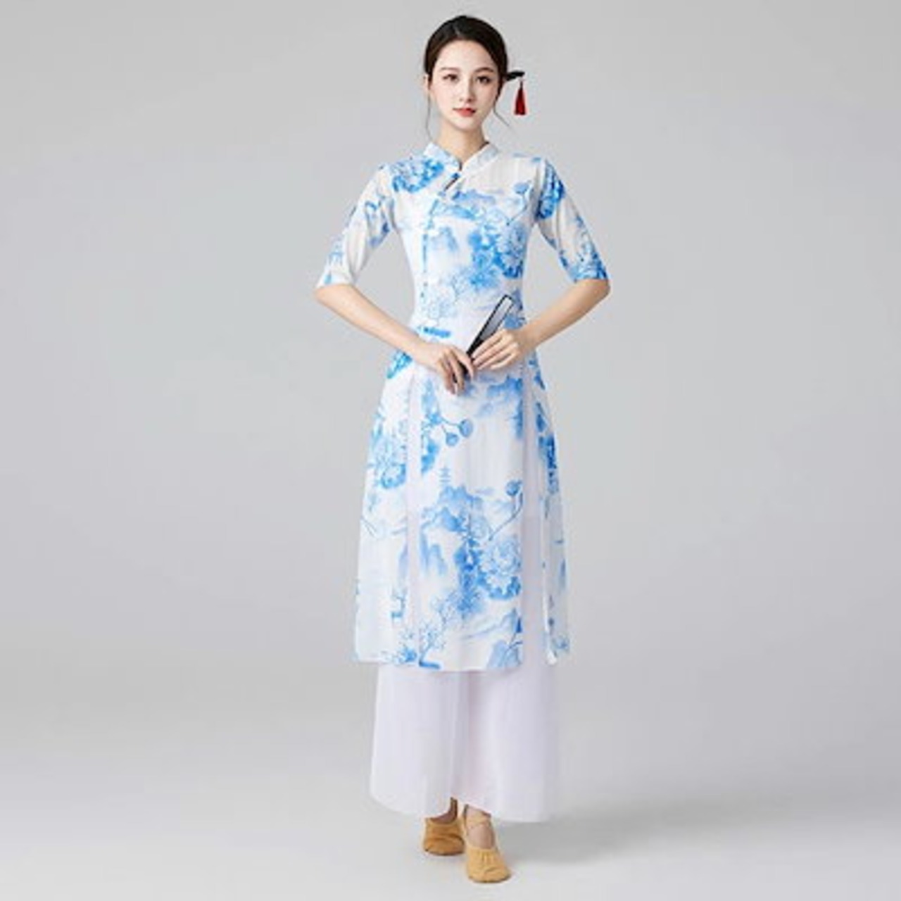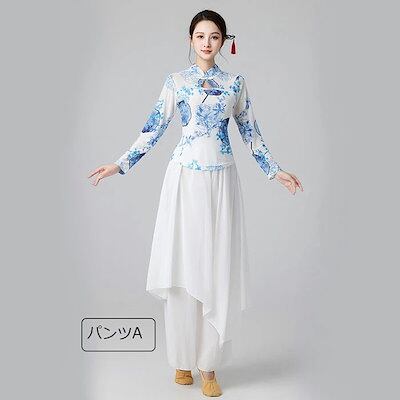 ダンス衣装 エレガント 花プリント 5分袖 長袖 メッシュ トップス シフォン ガウチョパンツ ワイド パンツ フレアスカート ふんわり シフォン パンツ ダンス レッスン着 レディース 大人 ダンス | gizshop