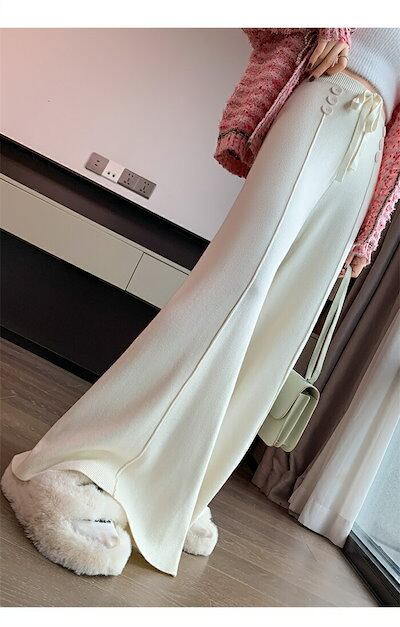 ワイドパンツ 秋冬 ガウチョパンツ パンツ レディース ロングパンツ フレアパンツ ニット パンツ ニットパンツ ロング丈 秋物 ウェストゴム 体型カバー リブニット 長ズボン スカンツ ガウチョ マ | gizshop