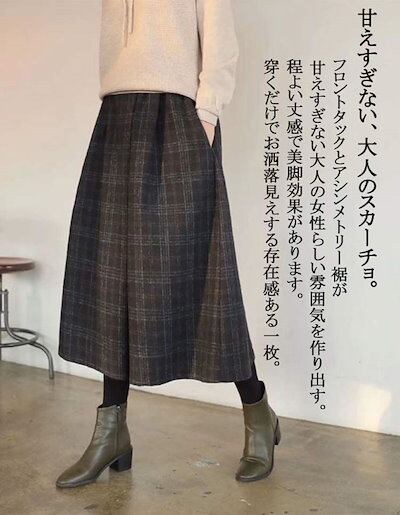 ガウチョパンツ 冬 ワイドパンツ レディース パンツ チェック きれいめ ボトムス スカーチョ 秋冬 ロングパンツ ワイド パンツ ガウチョ ふんわり ボリューム 九分丈 ウエストゴム フレアパンツ
