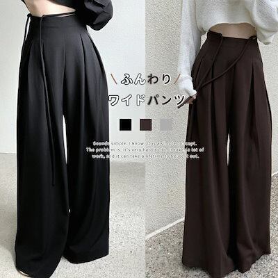 ワイドパンツ 秋冬 タックパンツ パンツ レディース カラーパンツ フレアパンツ タックワイドパンツ 卒業式 入学式 ボトムス オフィスカジュアル ロング ワイド タック きれいめ 無地 大きいサイズ | gizshop