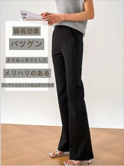 フレアパンツ レディース ハイウエスト フレア ベルボトム ストレッチ ベルボトムパンツ ストレッチパンツ マキシパンツ 無地 シンプル レトロ モード おしゃれ きれいめ 美尻 美脚ライン 脚長効果 | gizshop
