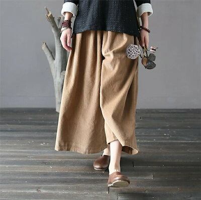 ガウチョパンツ コーデュロイ レディース 秋冬 ワイドパンツ コーデュロイパンツ 秋 春 冬 大きいサイズ ゆったり ボトムス コーデュロイ パンツ タック フレアパンツ キュロットパンツ 体型カバー | gizshop