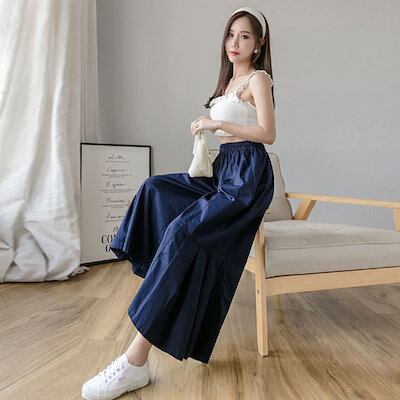 ロング丈 レディースパンツ ワイドパンツ フレアパンツ カジュアルパンツ サマーパンツ ゆったり ボトムス カジュアル ネイビー 春夏 ロング丈 落ち感 きれいめ 綿麻混 おしゃれ 上品 楽ちん 着?