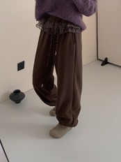 オンリーワントゥーユー韓国ファッション ロングパンツ レトロ レディース ゆったりする ヒョウ柄 暖かい 厚手 カジュアルパンツ スラックス ダブルユーゲン紗