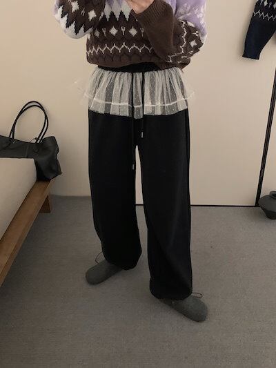オンリーワントゥーユー韓国ファッション レース スラックス レース装飾 快適である 厚め ゆったりする 足を束ねる ししゅう カジュアルパンツ ロングパンツ レディース