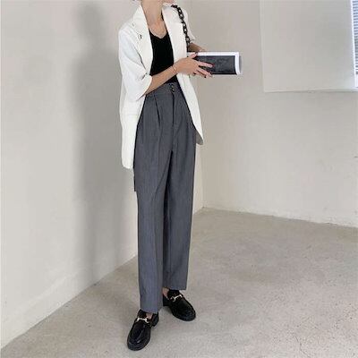 24新作 パンツ レディース ボトムス スラックス 長ズボン ストレート スーツ 無地 ロング丈 パンツ タック シンプル フェイクポケット ハイウエスト スーツパンツ 細見え きれいめ | gizshop
