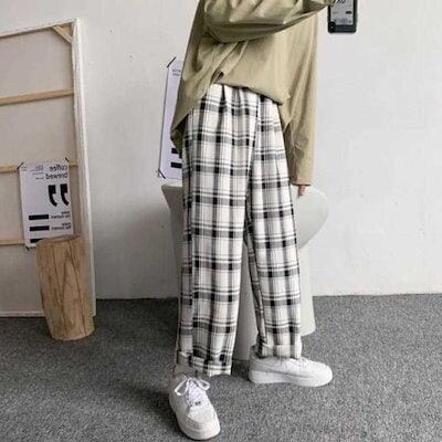 ワイドパンツメンズチェック無地パンツボトムススボンメンズレディースユニセックス春夏秋スラックスワイドストレッチメンズファッションカジュアル