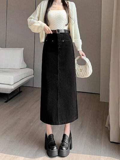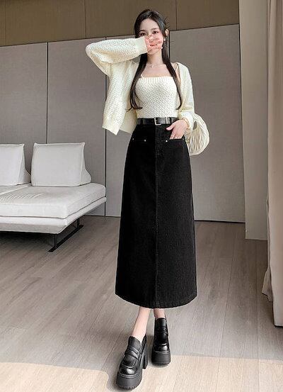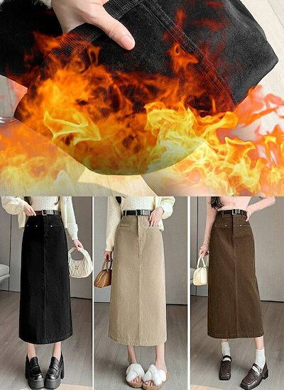ロングスカート コーデュロイ 裏起毛 暖かめ ホワイト レディース ハイウエスト スリット ボリューム感 無地 着痩せ 体型カバー 可愛い おしゃれ キレイ目 春秋 秋冬 コーデやすい お出かけ お呼 | gizshop