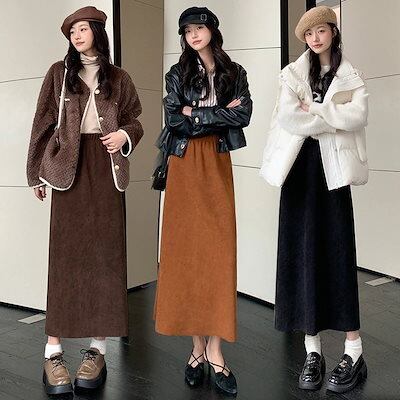 裏起毛 スカート レディース秋 厚手 セミロングスカート ハイウエスト ニットスカート ひんやりボトムス ひんやりボトムス