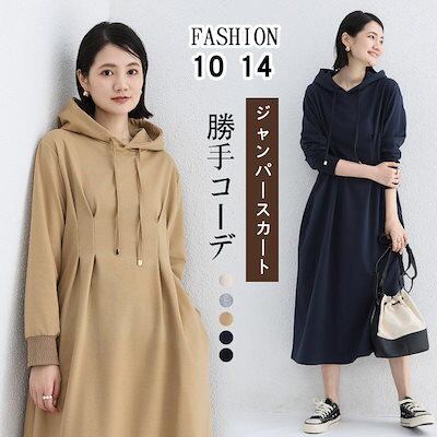 大人の魅力 ワンピース Aライン パーカーワンピース レディース 秋春 長袖 暖かい あったか フーディー 着痩せ ロング丈 細身 綿混