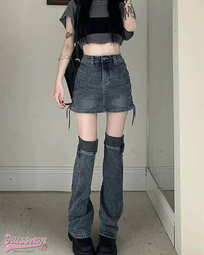 デニム ミニスカート 2点セット デニムスカート ミニ丈 ハイウエスト ジーンズ カジュアル ミニ丈 美脚 脚長 レディースファッション 系 ラッキーバッグ