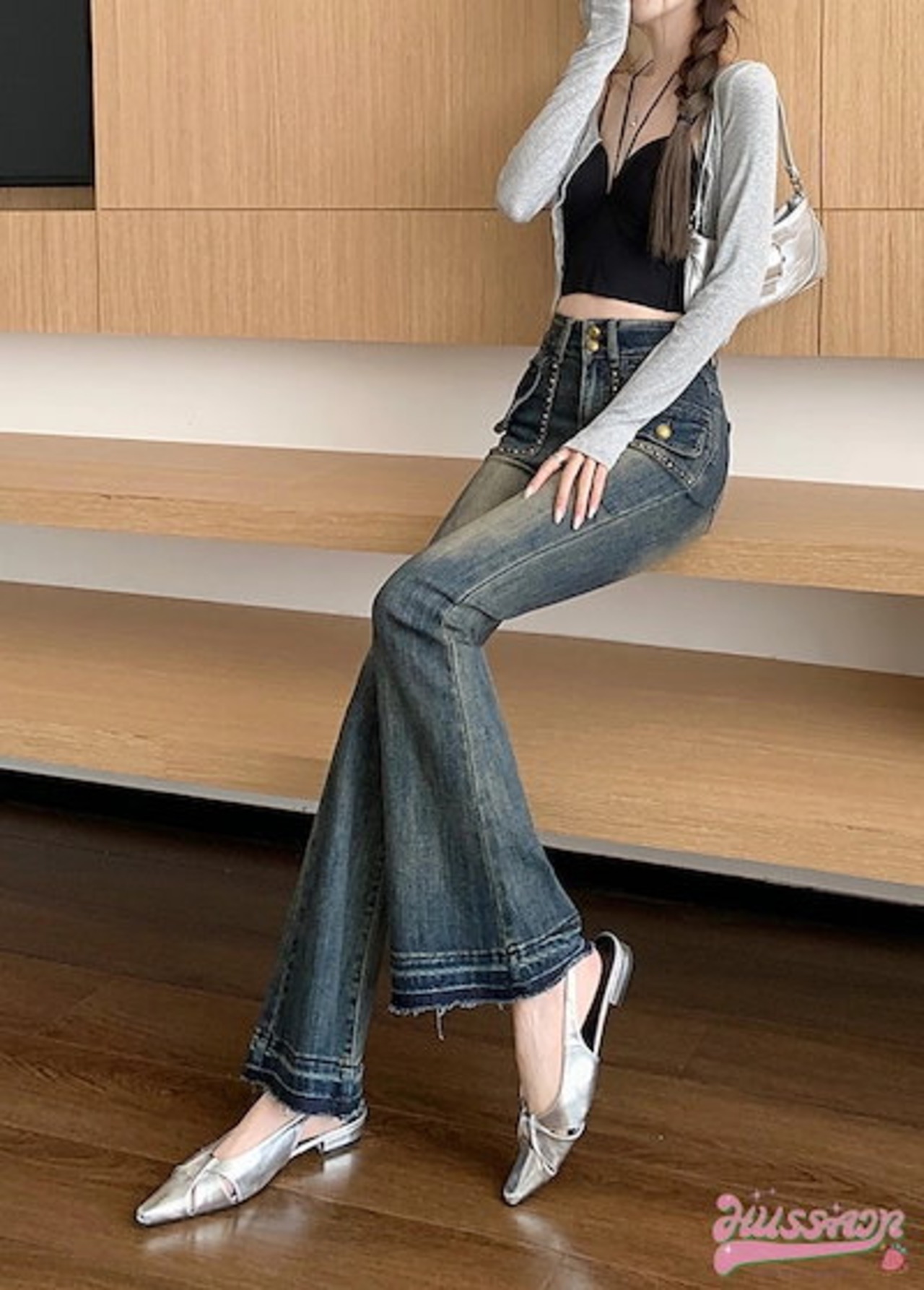 24パンツ デニム ジーンズ スキニー ワイドレッグハイウエスト 脚長効果 美脚効果 細見え ウォッシュ カジュアル 韓国ファッション レディース お出かけ