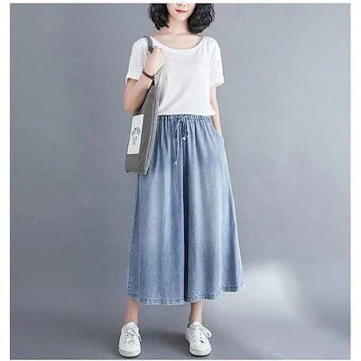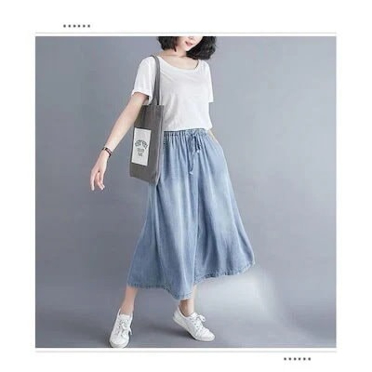 ワイドパンツ デニム レディース ガウチョパンツ 8分丈 バギーパンツ ジーパン 薄手 ウエストゴム