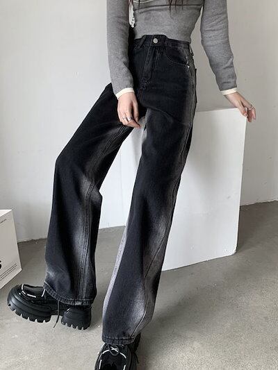 大きいサイズ 厚手 ワイドレッグ ジーンズ レディース ハイウエスト ゆったり ストレート デニム モップパンツ