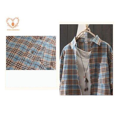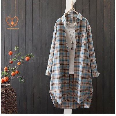 シャツ ブラウス 長袖シャツ シャツブラウス トップス レディース 折り襟 長袖 前開き チェック 柄 チェック柄 綿麻 綿 カジュアル 大きいサイズ 着痩せ 春 秋