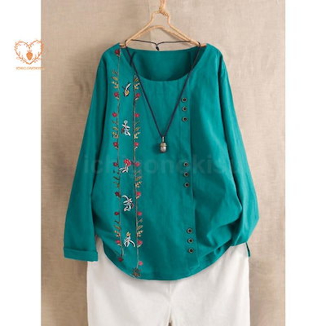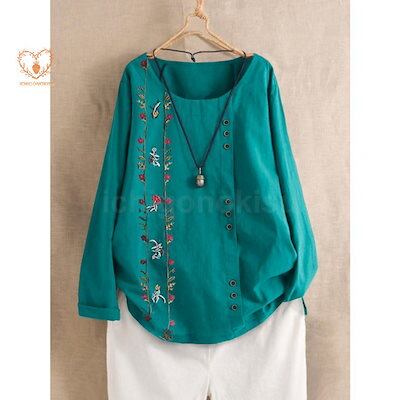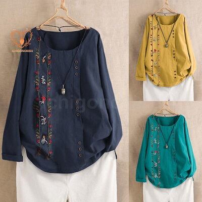 シャツ シャツブラウス ブラウス トップス プルオーバー レディース Uネック 刺繍 柄 通気性 長袖 体型カバー 大きいサイズ 春秋 春 秋 30代 40代