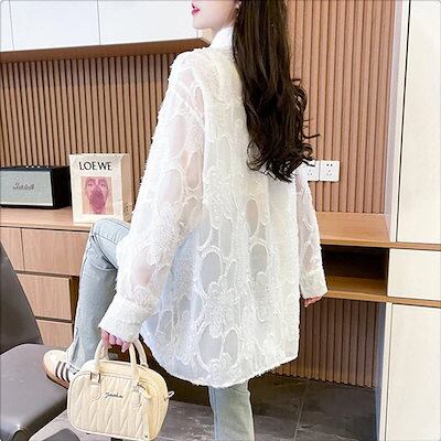 【3日で出荷】UVカット 春夏 日焼け防止 セミロング シャツ ゆるい ジャカード 長袖 カーディガン