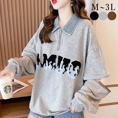 トレーナー スウェット レディース トップス 長袖 秋 冬 ロゴ おしゃれ 部屋着 大きいサイズ ゆったり オーバーサイズ シンプル M L 2L 3L
