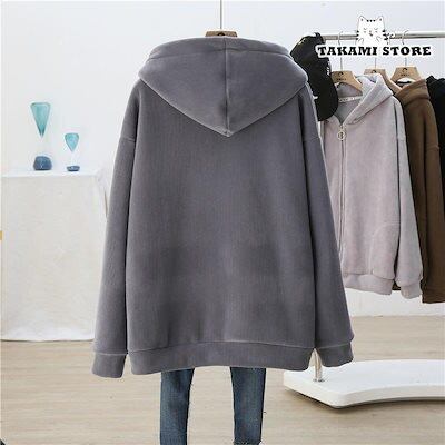 【beifengzh 0 ng】新作パーカー レディース 裏ボア 厚手 ジップ スウェット アウター 防寒 フード付き ス ロング丈 秋 冬 あったか ゆったり カジュアル 大きい | gizshop