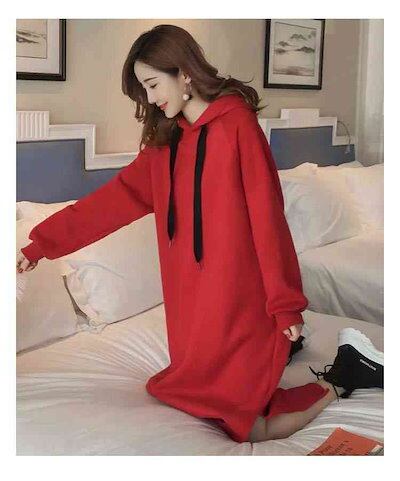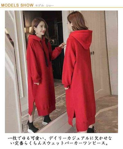 早い者勝ち パーカー レディース ワンピース 裏起毛 厚手 秋冬 アウター パーカーワンピース プルオーバーパーカー ロング丈 プルオーバー フード付き スウェット レイヤード風 無地 カジュアル ゆ | gizshop