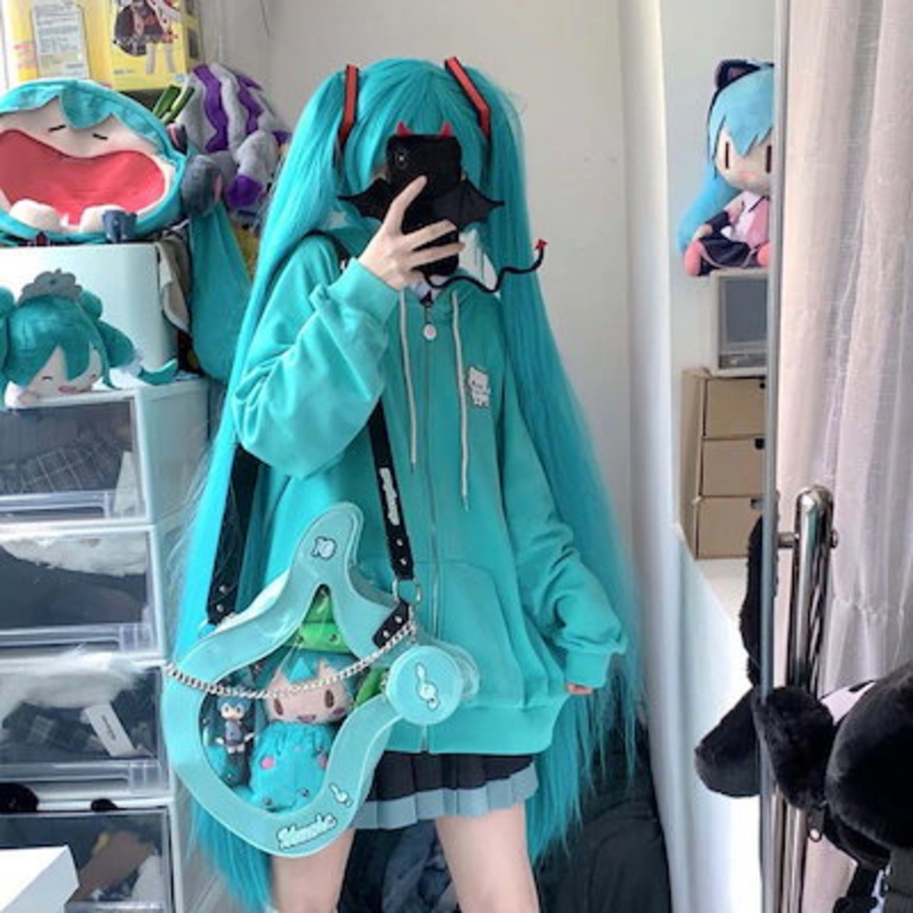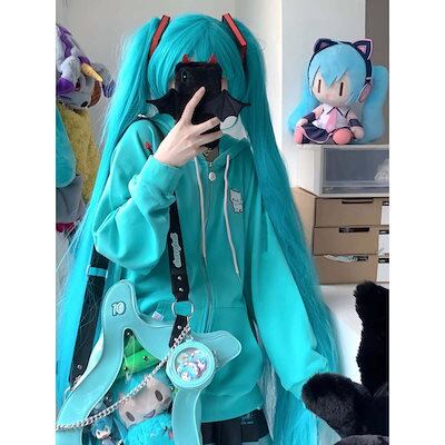 猫の刺繍ネギグリーンがかわいい2024春百合二次元 パーカー レディース 可愛い 連帽衛衣女加絨コート フード付き スウェット ハローキティ 秋冬 トップス 韓国ファッション