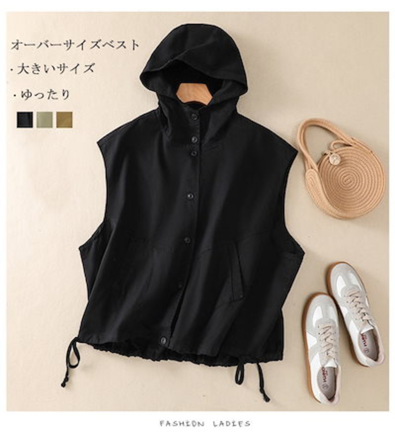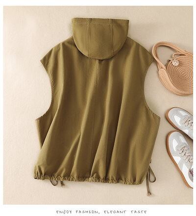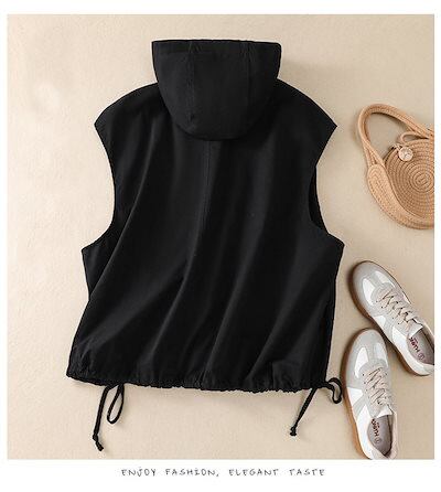 夏 カジュアル 重ね着 羽織 体型カバー ポケット付き 黒 レディース 秋物 無地 シンプル ゆったり お洒落 ブラック 羽織り フード付き 春 秋 前開き アウター ノースリーブ トップス ベスト | gizshop
