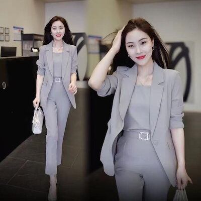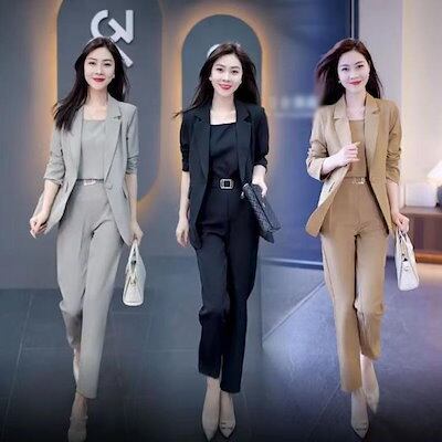 セットアップ フォーマルスーツ 3点セット 事務服 タンクトップ+パンツ レディース スーツ 入学式 ジャケット+ ビジネススーツ パンツスーツ ママスーツ スーツレディース 上下 キャリア 通勤 就 | gizshop