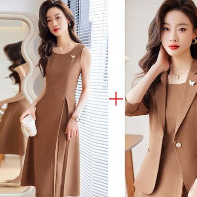 オフィス ノーカラー フォーマル 入学式 レディース 入園式 卒業式 ママスーツ 2点セットスーツ(ジャケット&ワンピース) スーツ ビジネス 卒園式 ママ 結婚式 セットアップ 母 秋 30代 40 | gizshop