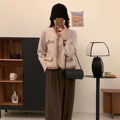 ツイードジャケット アウター レディース Vネック ジャケット ツイード 羽織り 長袖 ノーカラー フォーマル アウター スーツジャケット ノーカラージャケット スーツ 襟なし トレンド 春 秋冬 着 | gizshop