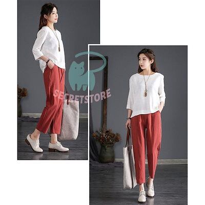 新品(タイムセール)ガウチョパンツ リネンパンツ 九分丈 レディース テーパードパンツ ボ 涼しい 通気 綿麻ズボン 太め ゆったり 体型カバー 薄手 春夏