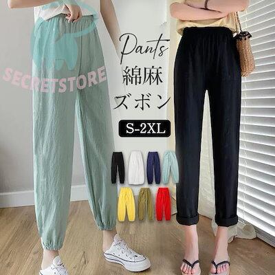 新品(タイムセール)ガウチョパンツ リネンパンツ 九分丈 レディース テーパードパンツ ボ 涼しい 通気 綿麻ズボン 束口 太め ゆったり 体型カバー 薄手 春夏