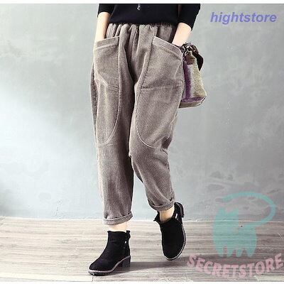 新品(タイムセール)ボ テーパードパンツ ズボン サルエルパンツ パンツ レディース 大きいサイズ コーデュロイ おしゃれ ゆったり 無地 カジュアル 着痩せ シンプル 秋冬