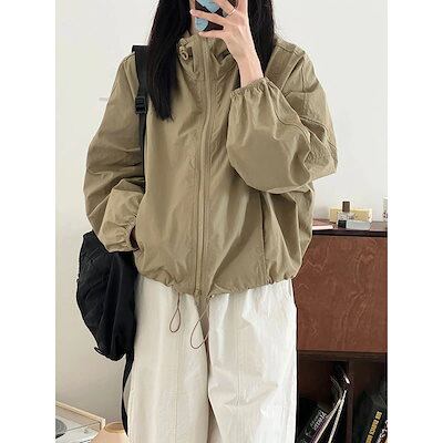 トップス 春秋 パンチングジャケット アウター 防風 ジャケット 登山服 韓国 カーキ ショート 薄い 作業着 スポーツ レディース