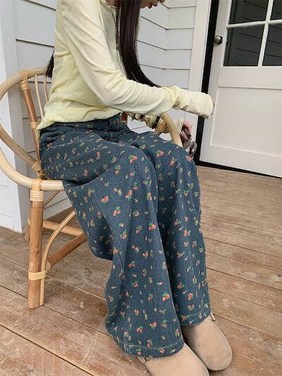 デニムワイドパンツ デニムパンツ レディース 花柄 ジーンズ 総柄 ストレートパンツ ボトムス ワイド パンツ 大きいサイズ ゆったり バギー 春夏秋 カジュアル ズボン 美脚 柔らかいデニム ゆった | gizshop