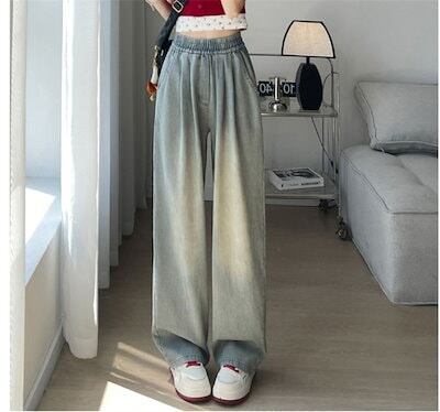 ワイドパンツ 涼しい 夏 デニムパンツ レディース ひんやり パンツ 爽やか デニムワイドパンツ 薄手なデニム ジーンズ ロング丈 ボトムス 冷感素材 リラックス ウエストゴム ジーパン バギーパンツ | gizshop