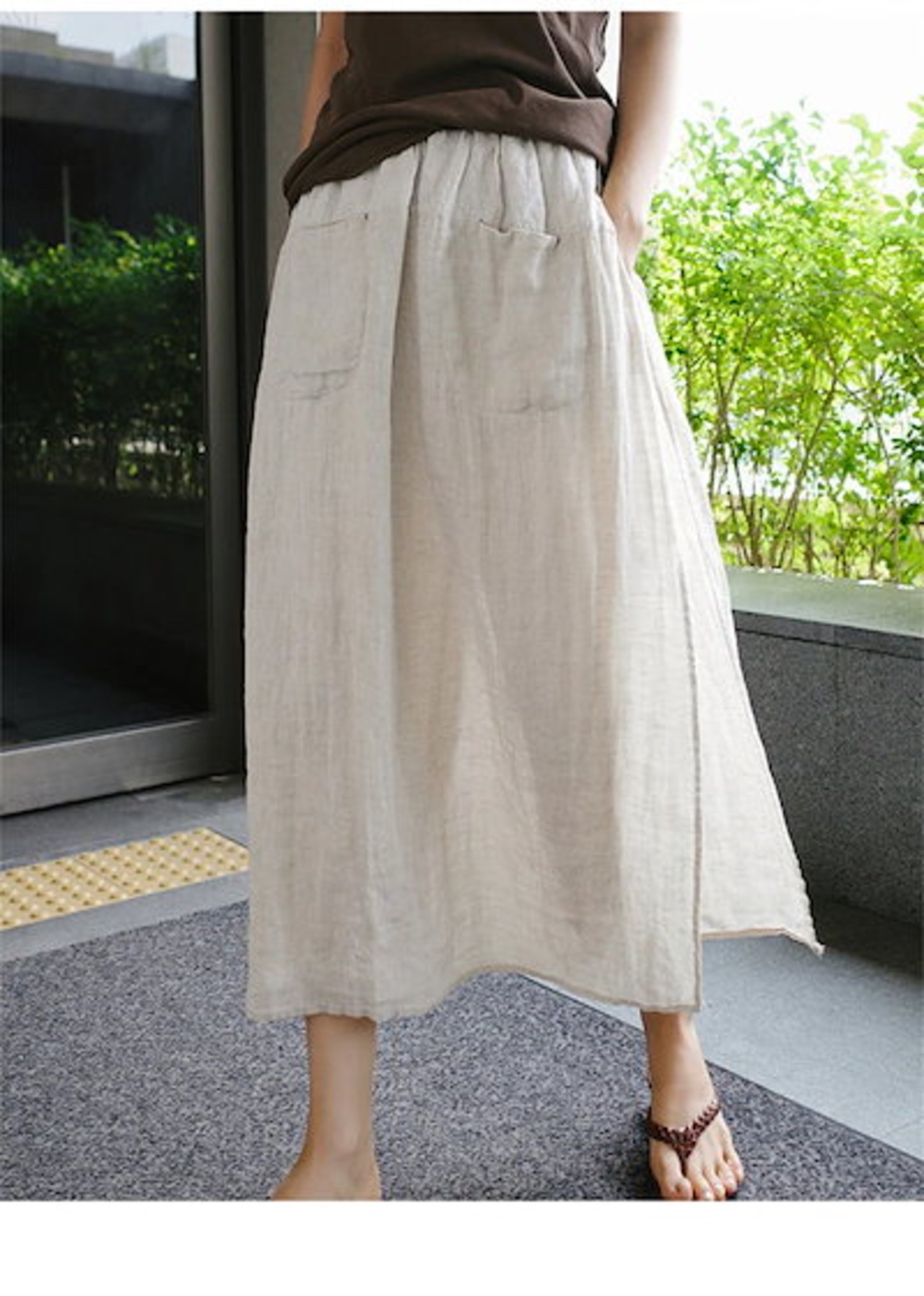 綿麻ワイドパンツ ン スカート レディース ガウチョパンツ フレアパンツ スカート見えるパンツ 綿麻風 ウエストゴム バギーパンツ 大きいサイズ ゆったり リラックス ビーチ 海 爽やか ふん | gizshop