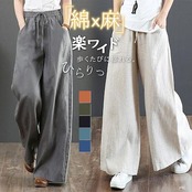 超人気 ワイドパンツ レディース チノパン ン バギーパンツ ガウチョパンツ ズボン ロング ワイドパンツルック 綿麻 大きいサイズ リラックス 美脚