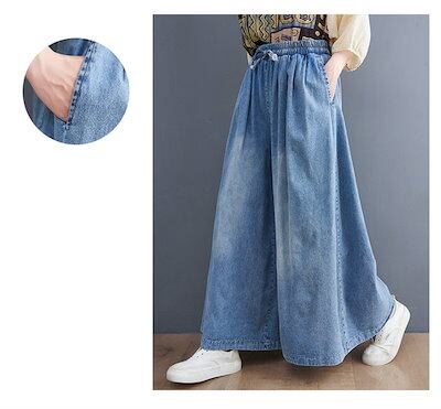 デニムパンツ ワイドパンツ レディース ガウチョパンツ デニム ゆったり ボトムス ジーパン チノパン バギー イージーパンツ 柔らか 森ガール デニム ズボン ウエストゴム 大きいサイズ 体型カバー