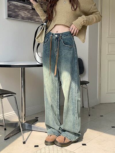 デニムパンツ レディース ワイドパンツ ジーンズ ジーパン バギー ボトムス きれいめ 大人カジュアル ロング ズボン 大きいサイズ ハイウエスト 長ズボン 体型カバー ファッション ゆったり オシャ