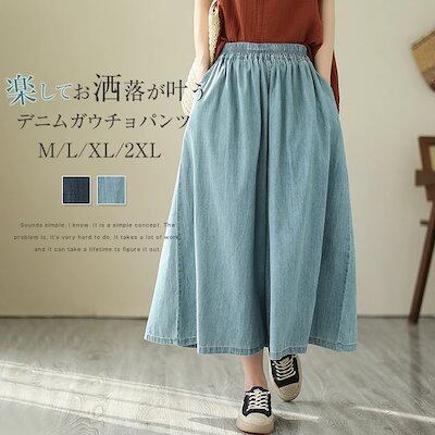 デニムワイドパンツ デニムガウチョパンツ レディース パンツ 夏 ジーンズ 大きいサイズ ゆったり ボトムス ジーパン バギーパンツ イージー 柔らか デニム 森ガール ズボン ウエストゴム 体型カバ | gizshop