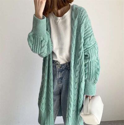 カーディガン レディース ニット 秋 冬 ケーブル編み ロングカーディガン ニットカーディガン カーデ コート アウター 厚手 ニット セーター とろみ ロング丈 ロングカーディガン ゆったり 柔 | gizshop