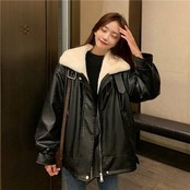 アウター 秋冬 ゆったり 厚手 皮ジャケット 高級感 怠惰風 レザー トップス レディースファッション 裏起毛 中綿コート カジュアルコート